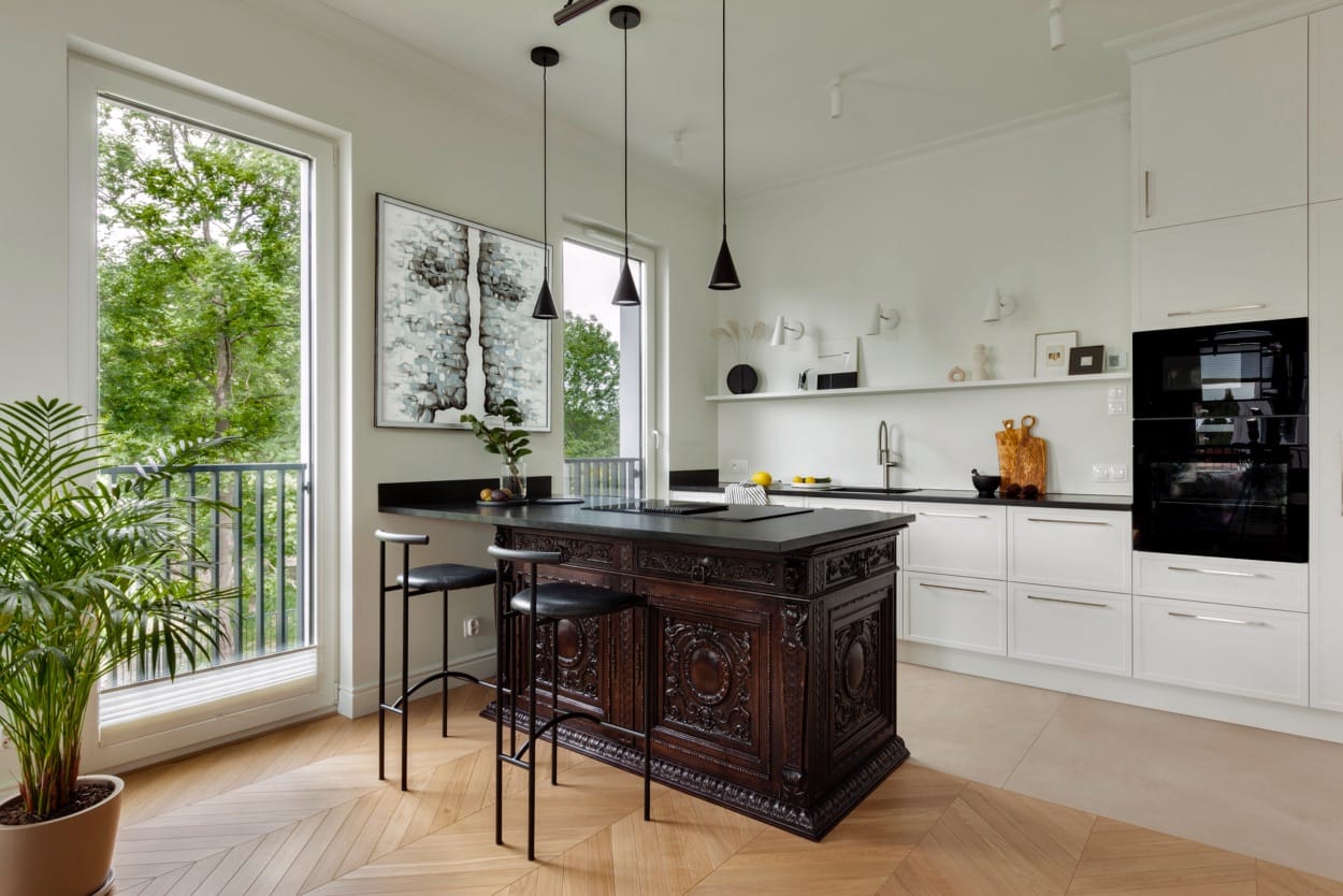 W tym projekcie odwróciliśmy klasyczną zasadę – zamiast dobierać sztukę do wnętrza, zaprojektowaliśmy całe mieszkanie z myślą o sztuce. Zlokalizowana tuż przy starym parku, nowa przestrzeń miała stać się tłem dla kolekcji obrazów i grafik, które stanowią jej kompozycyjną dominantę.
