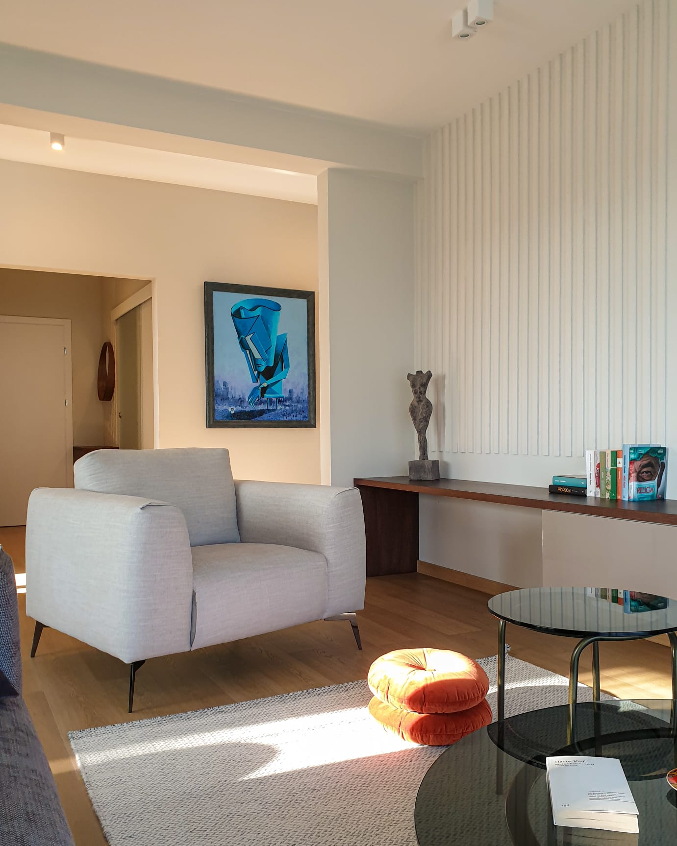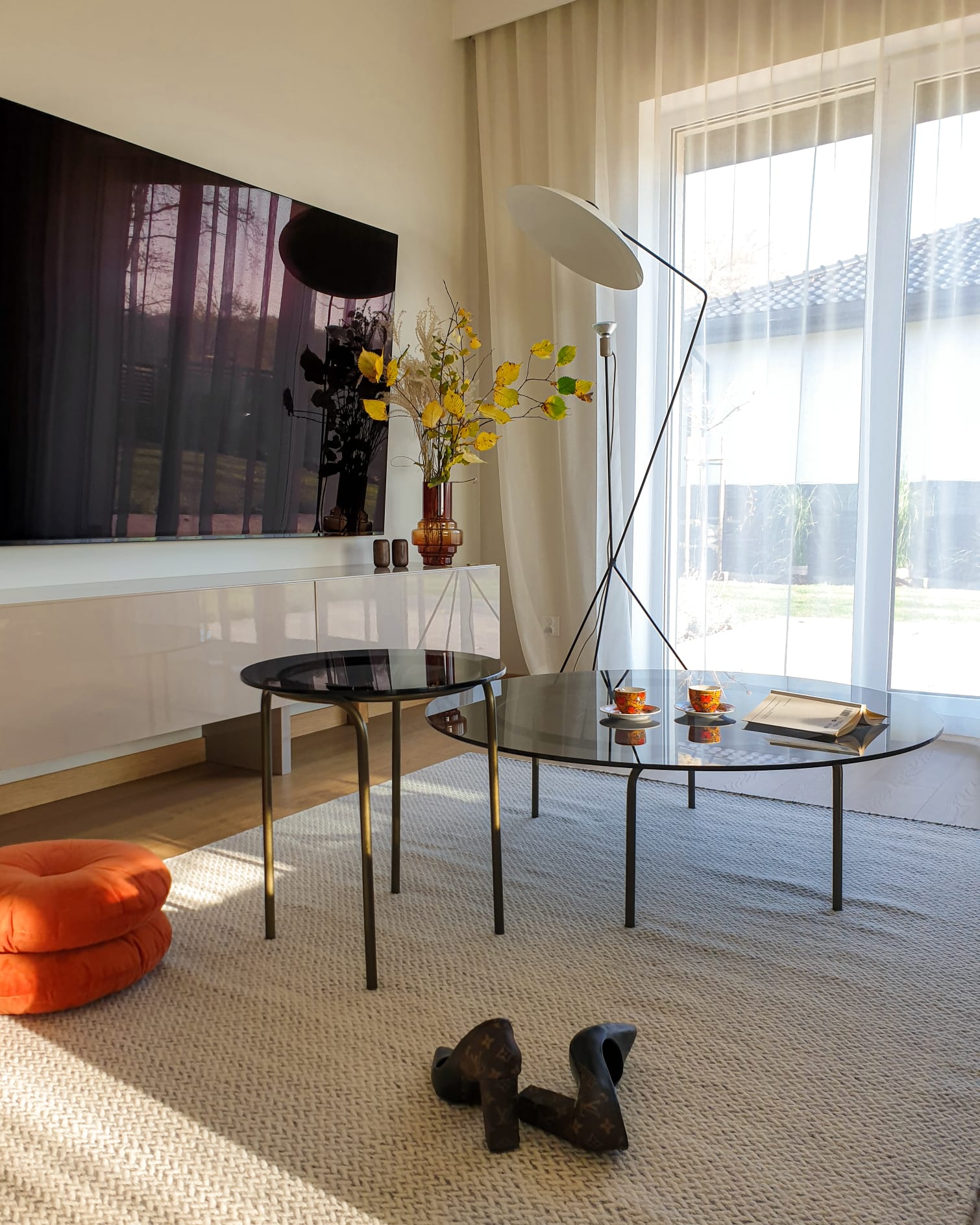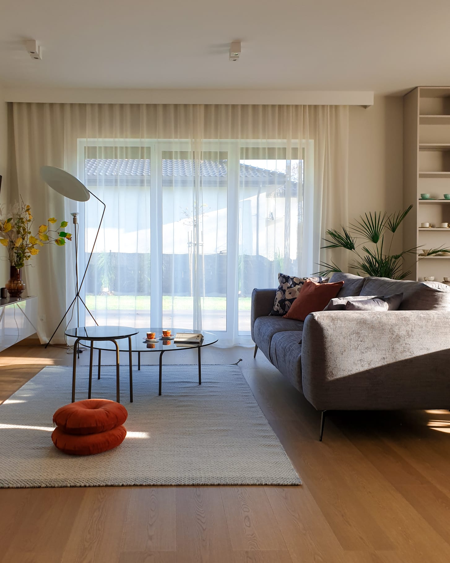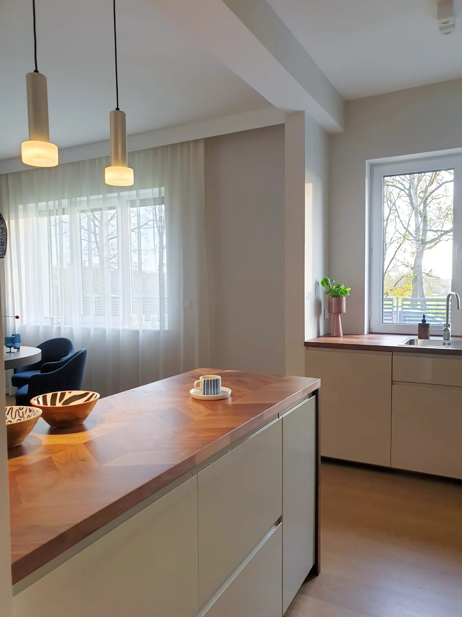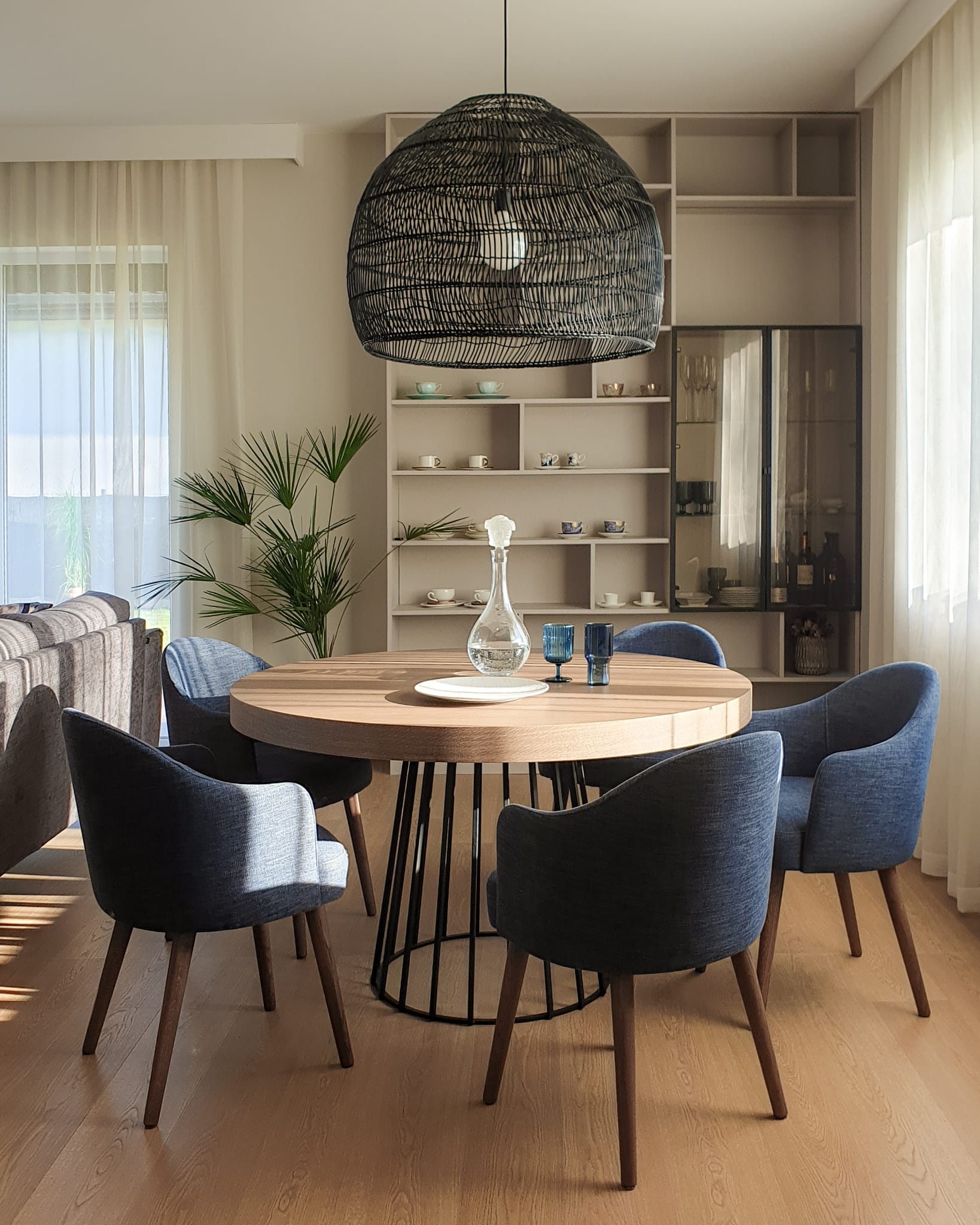 Efekt to wnętrze, które oddycha razem z naturą. Z okien rozciąga się widok na drzewa, a każdy element wystroju zdaje się współgrać z rytmem otoczenia.